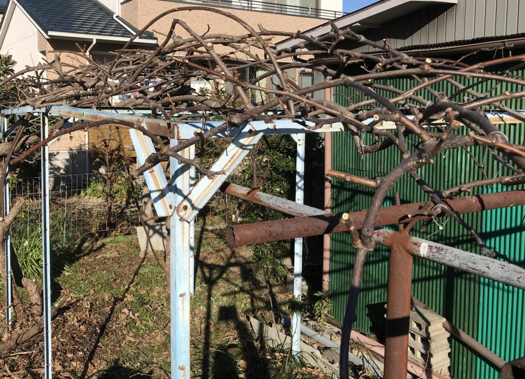 キウイの剪定:雄の木、雌の木をわかるようにしておく(白は雌にした)